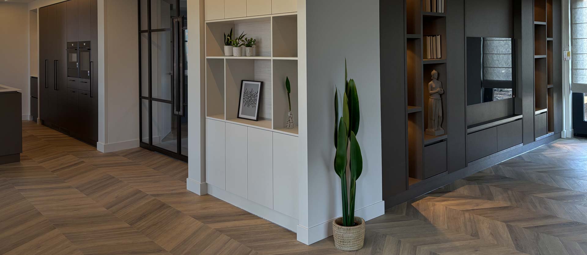 We creëren interieurs die helemaal op maat ontworpen en gemaakt worden in onze moderne werkplaats in Nuenen. In de showroom kunnen we u adviseren over alle materialen en mogelijkheden.
